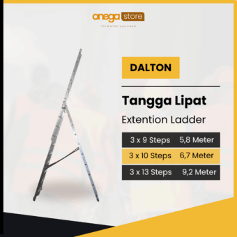DALTON Tangga Lipat Extension Ladder Tangga ekstensi (extension ladder) profesional dari Dalton, tangga ini cocok untuk penggunaan rumah, industri ringan, hingga proyek konstruksi kecil. Keunggulan Produk: ✅ Material Aluminium Ringan & Tahan Karat ✅ Desain Dua Bagian Perpanjang/Pendek ✅ Pengunci Otomatis & Handle Grip ✅ Kaki Anti-Slip dan Stabilisasi Spesifikasi Produk: •…
